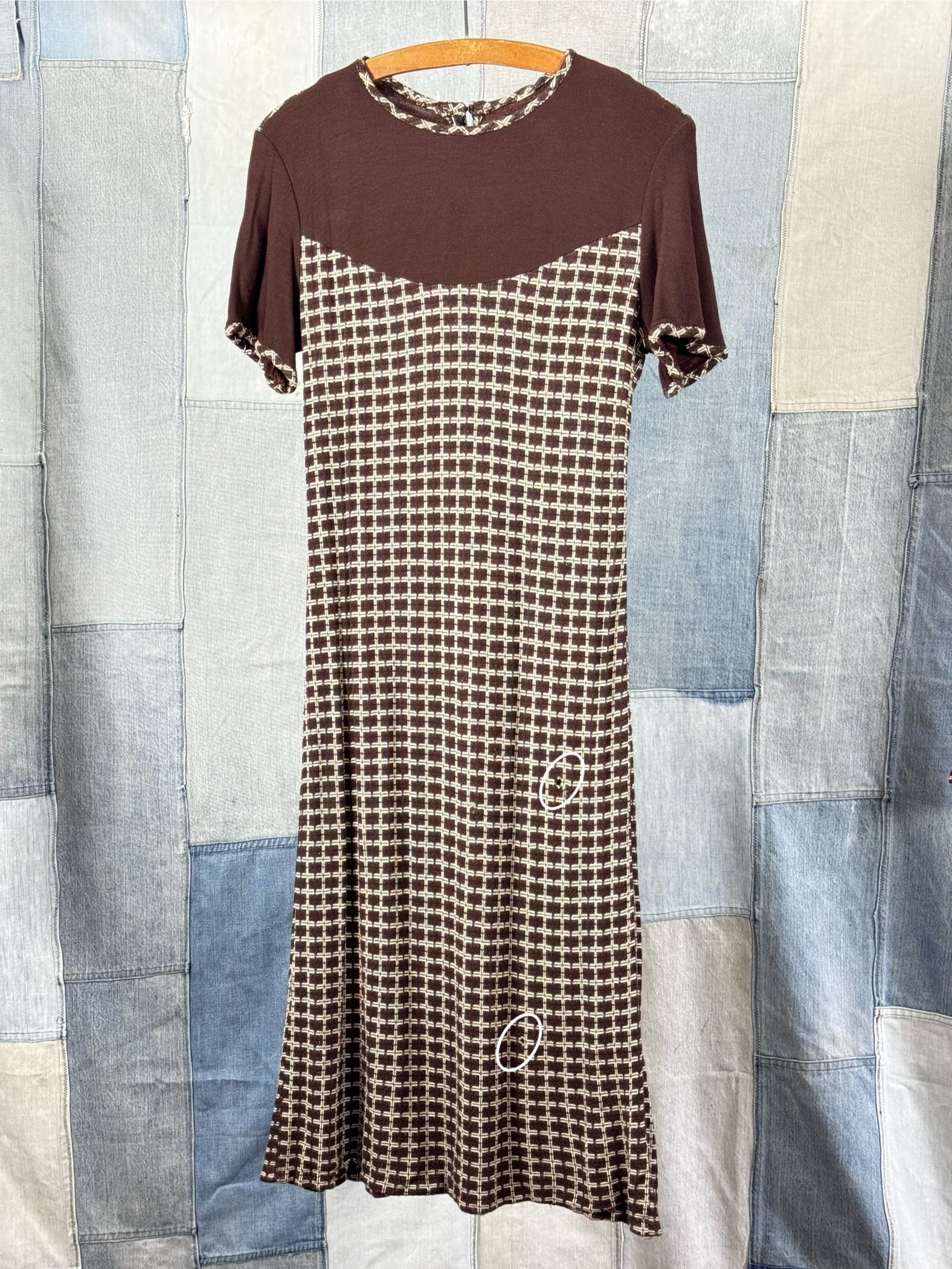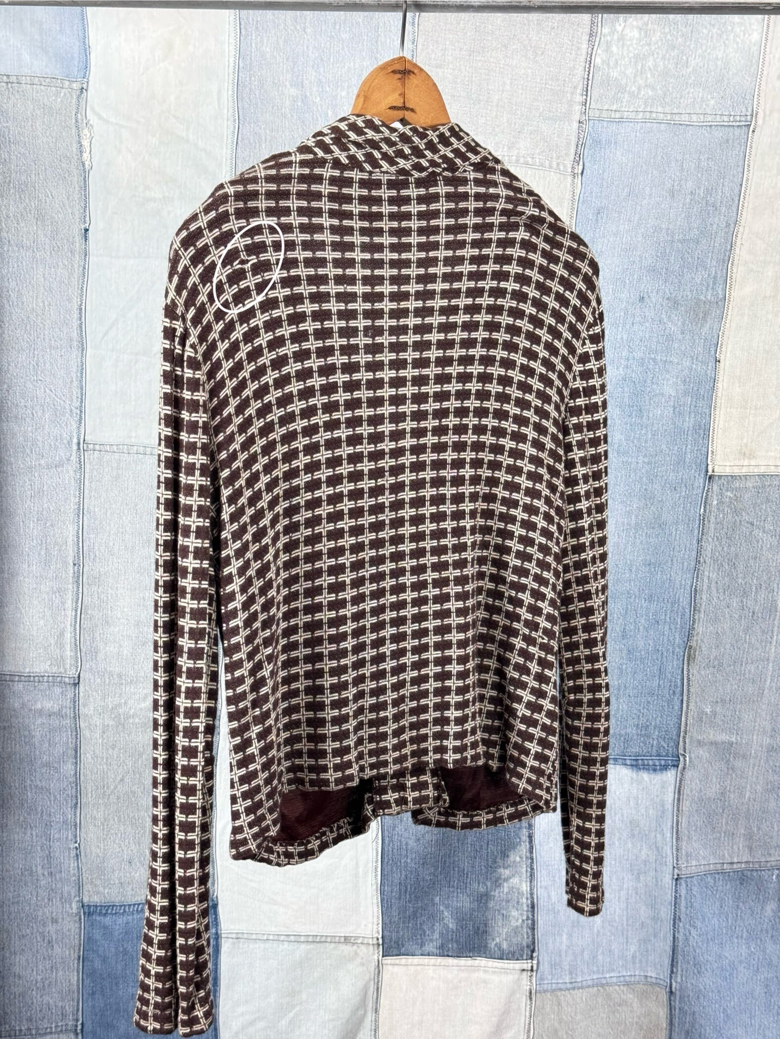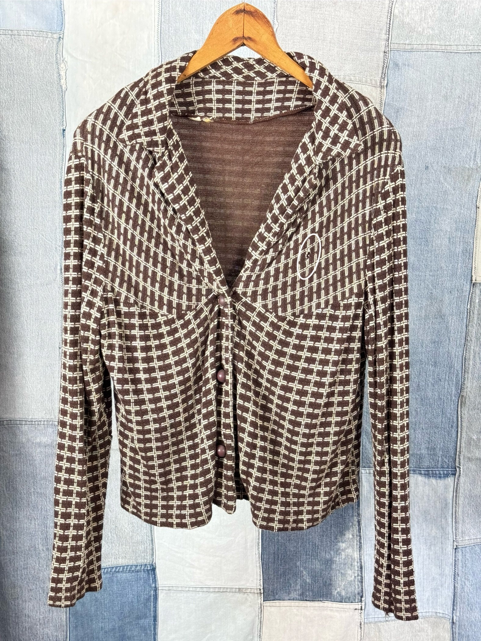 condition : good with flaw, appropriate signs of age and wear as seen in photos holes throughout as circled but each garment is lined so the holes aren’t completely see through. the jacket has buttons that don’t like to stay fastened but these can easily be replaced with larger buttons if preferred