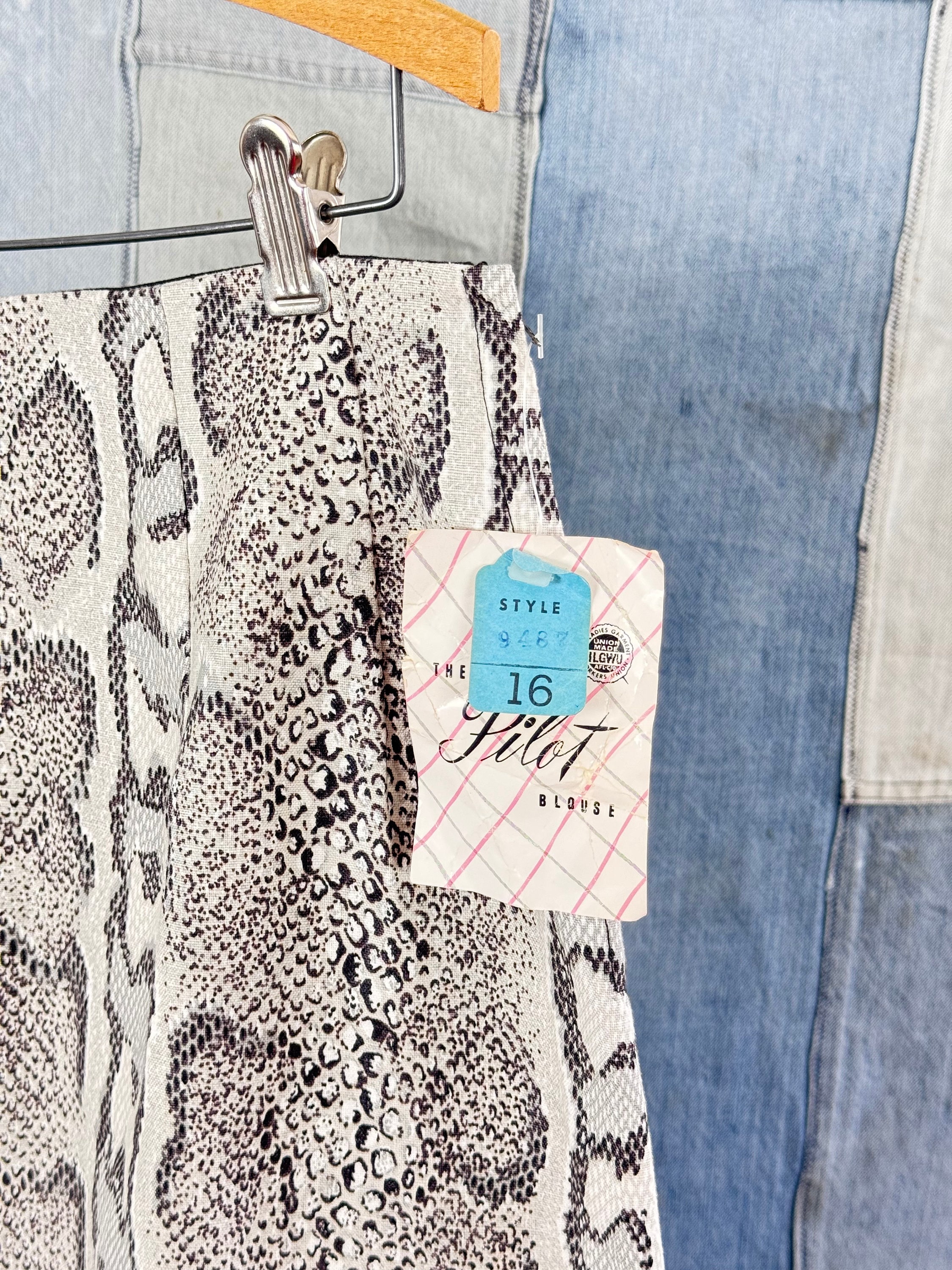 An authentic vintage snakeskin printed maxi skirt by Gayle Kirkpatrick for Pilot Blouses. Deadstock with original sales tags.