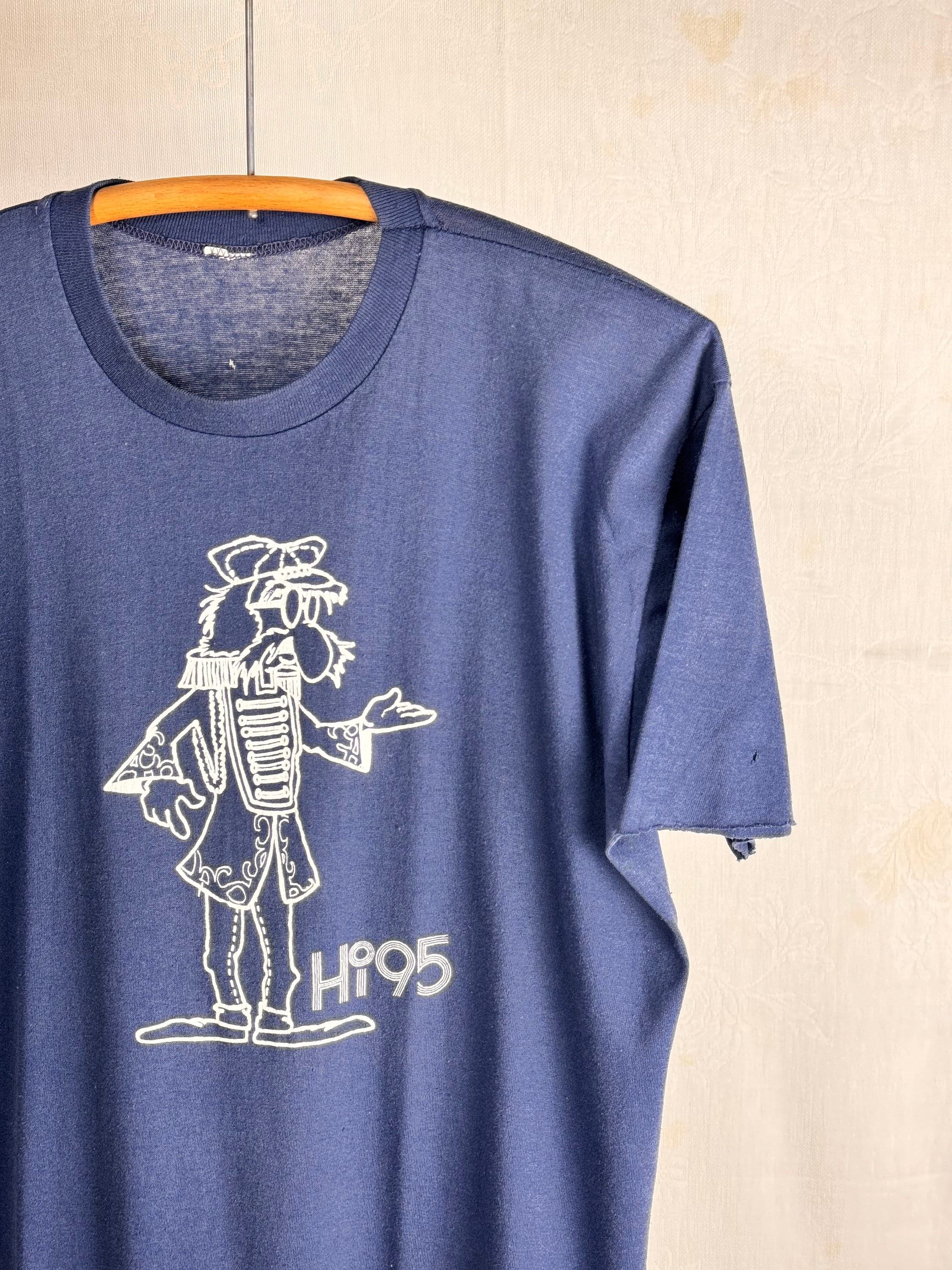 An authentic vintage t shirt for radio station Hi95 (Louisville, KY) with graphic inspired by the Beatles Sgt Peppers Loney Hearts Club Band. tag has been torn out. cutoff sleeves