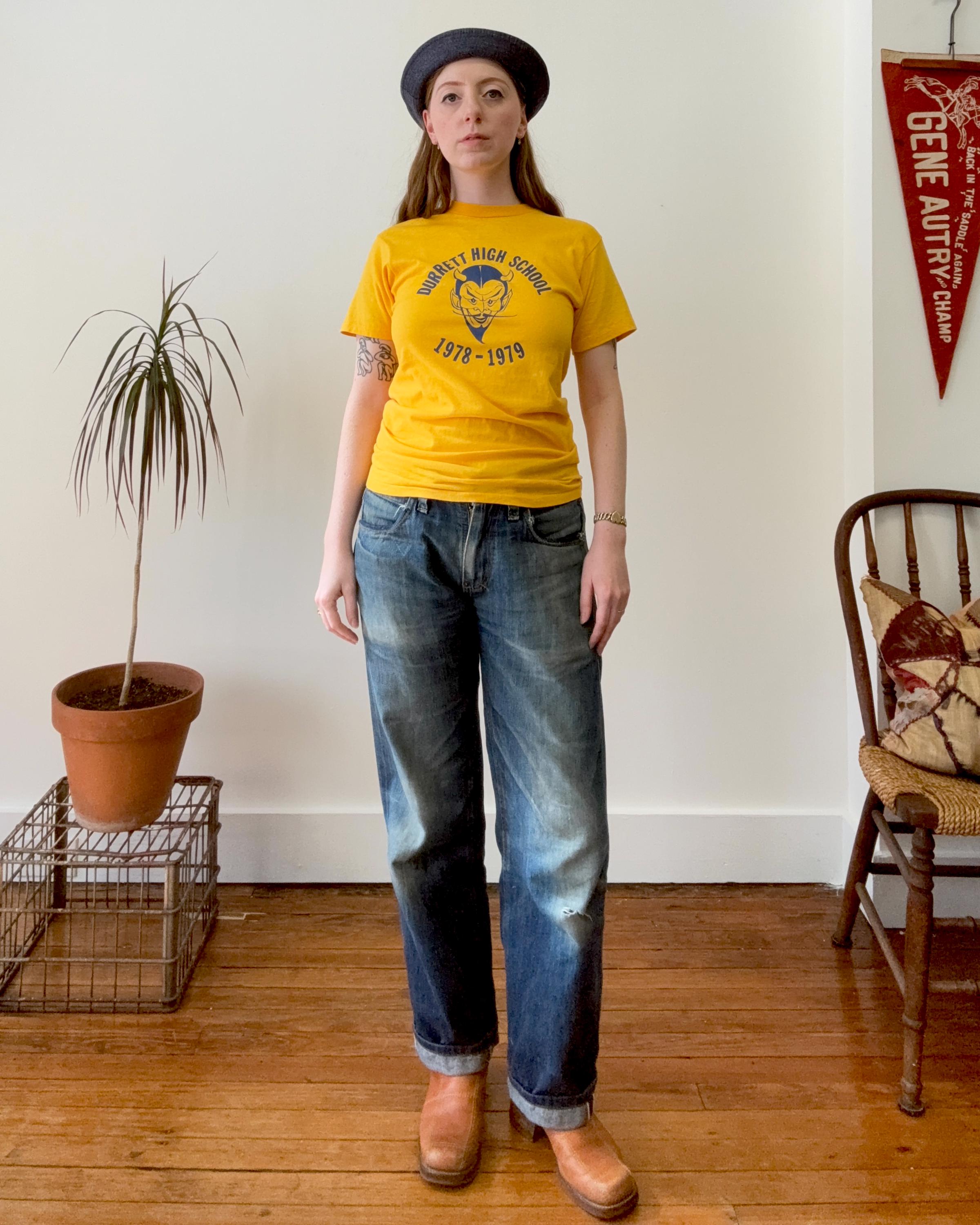 condition : great, appropriate signs of age and wear as seen in photos, no visible damage or large holes; garment is clean and ready to wear!