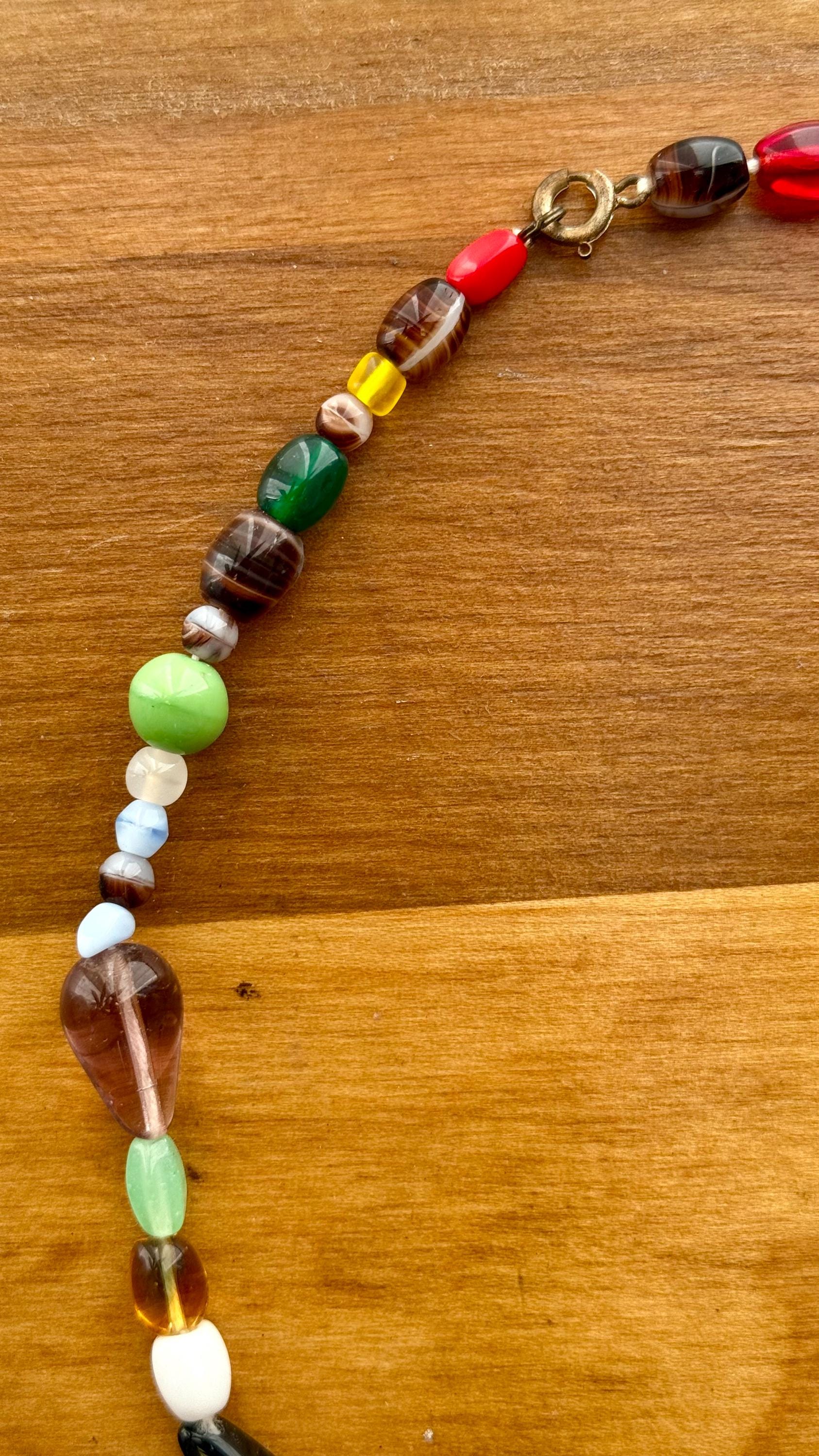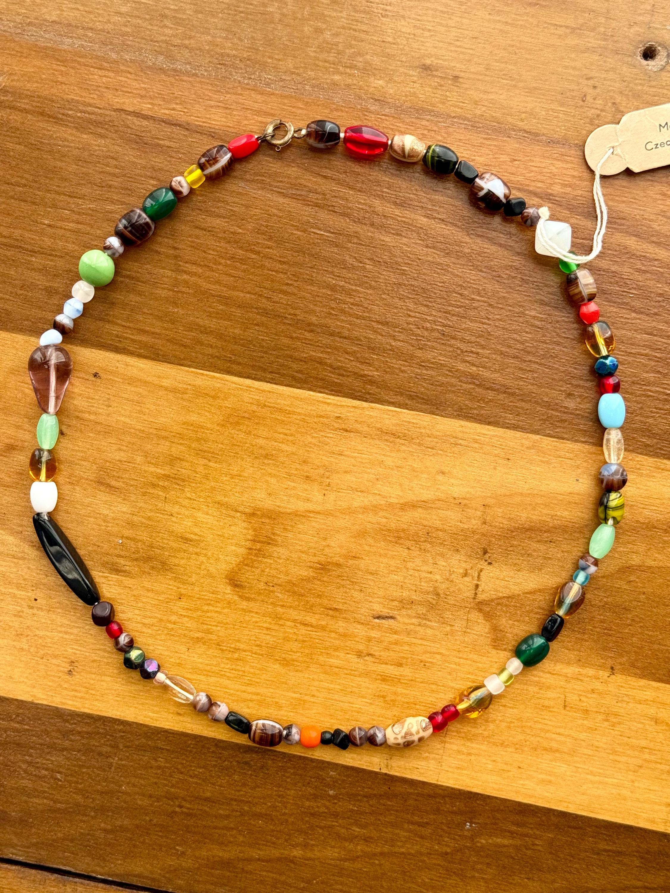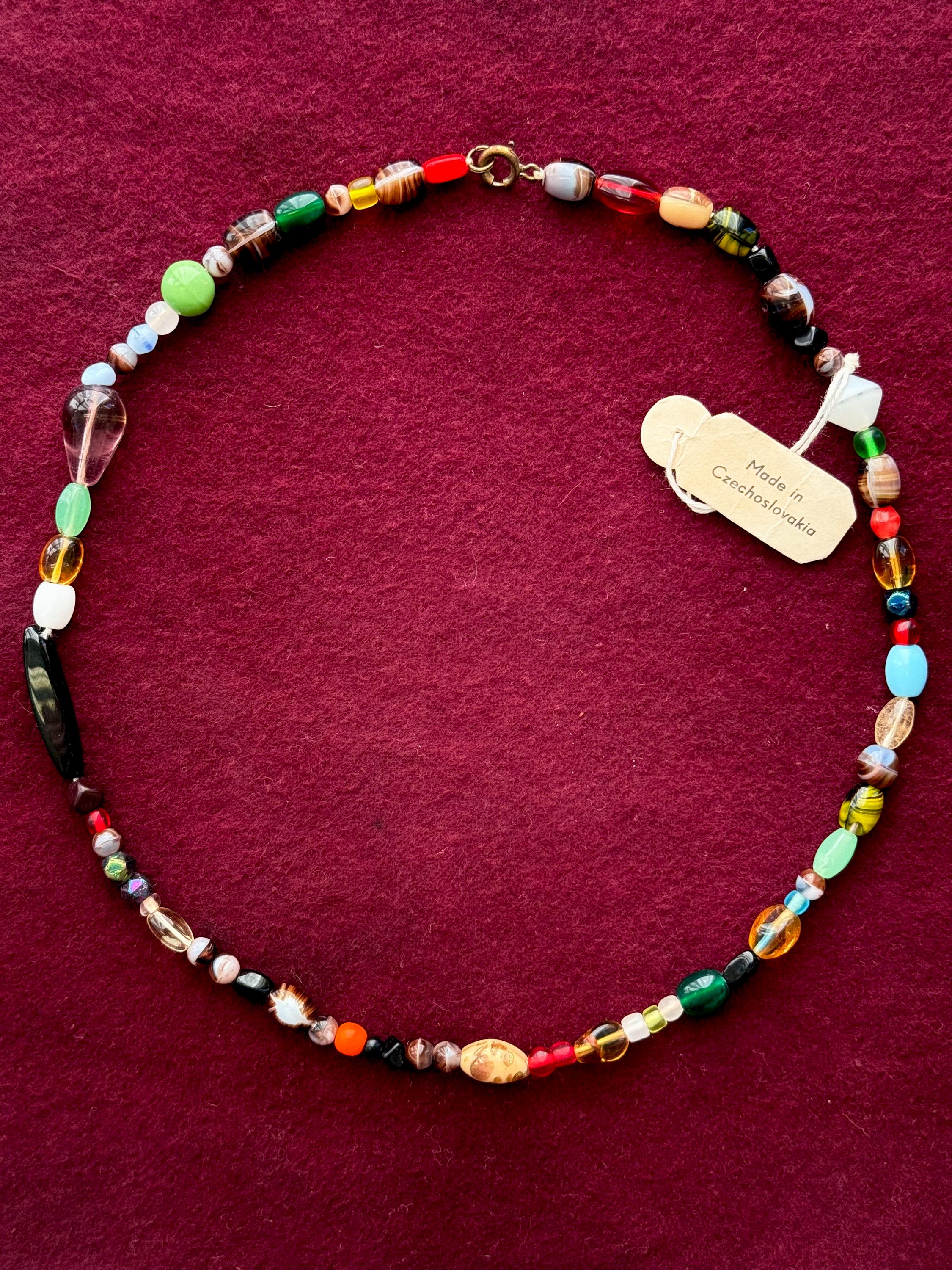 An authentic vintage necklace. a single strand of beautiful Czech glass beads in various colors and shapes.