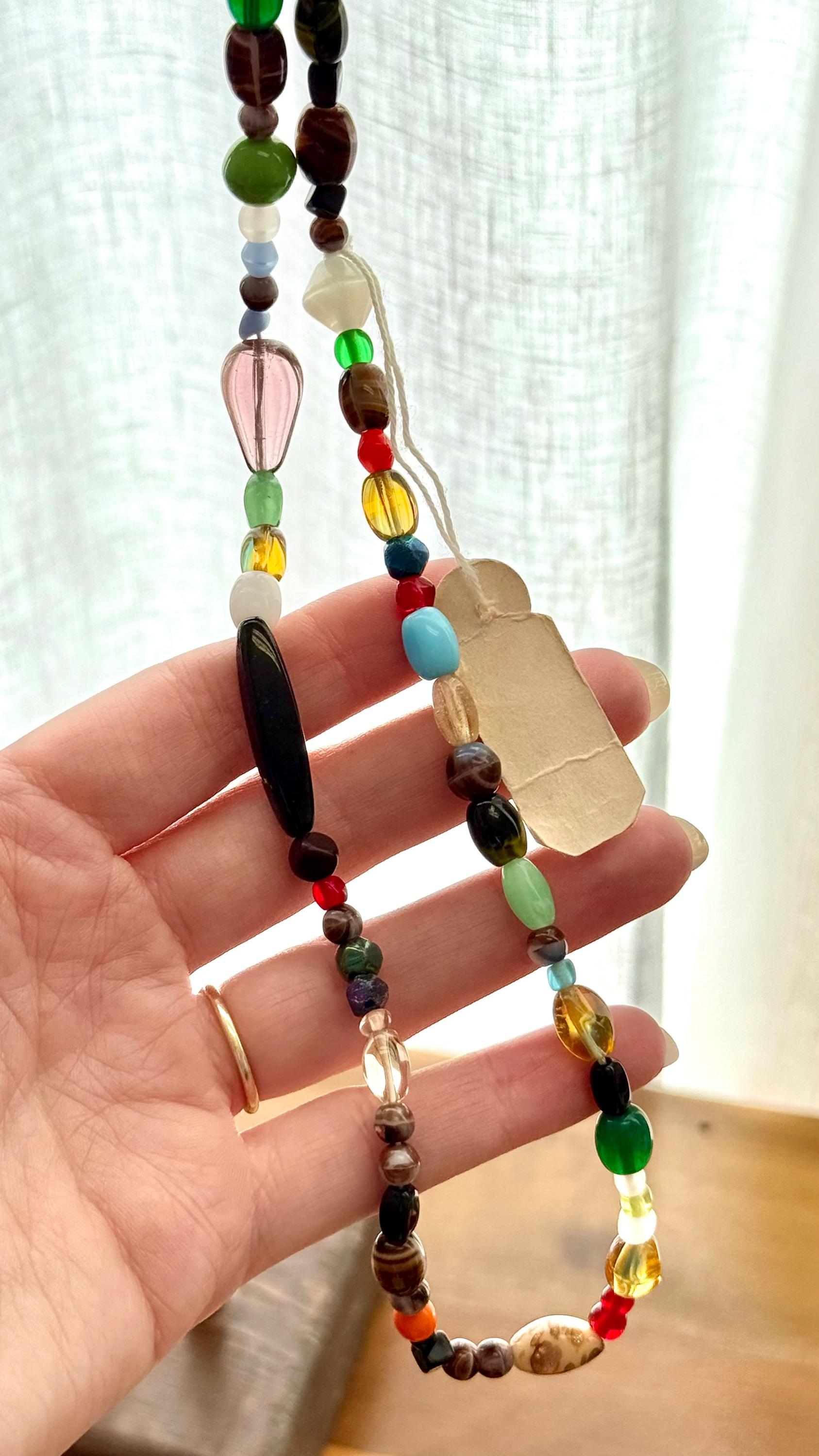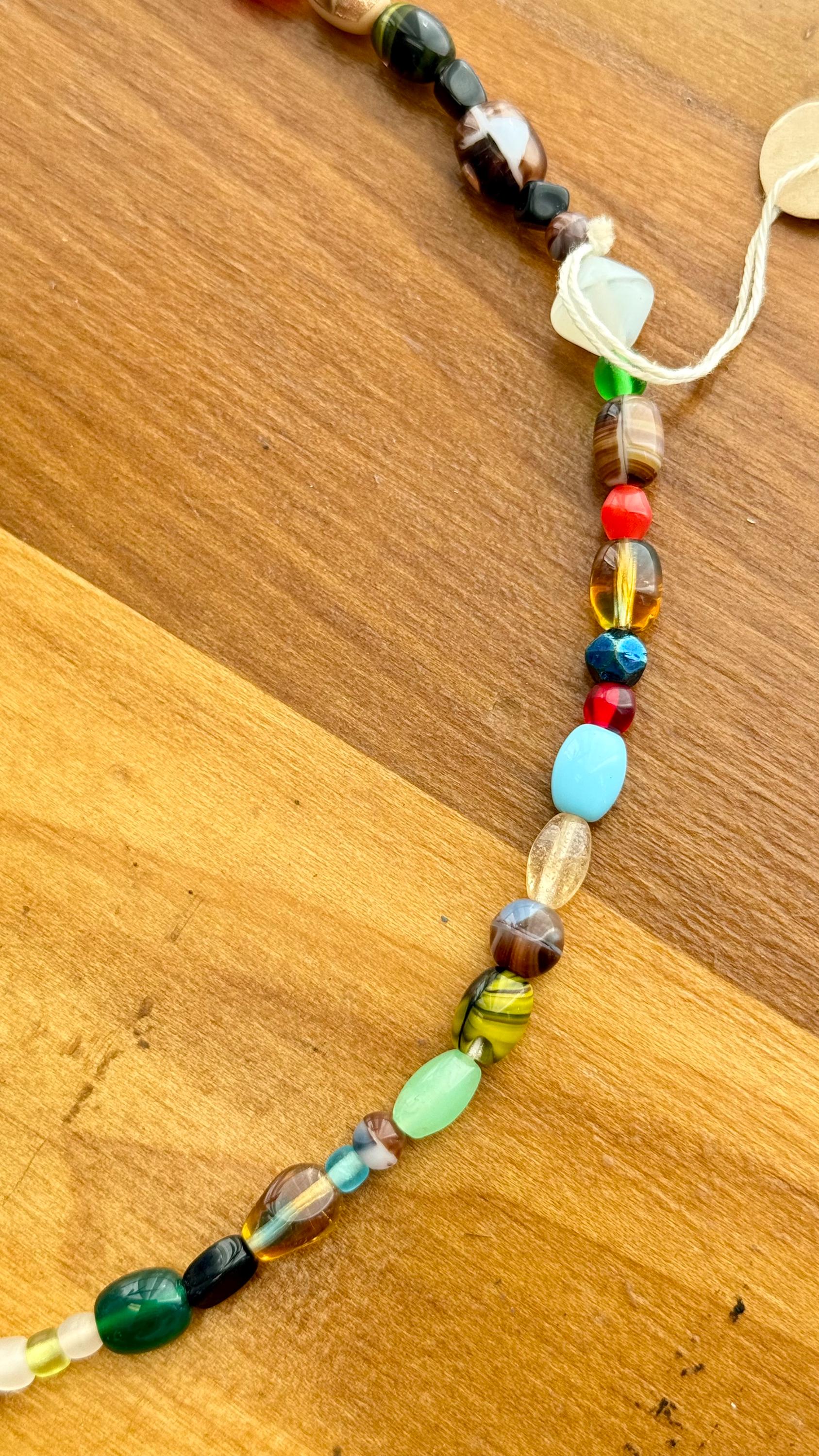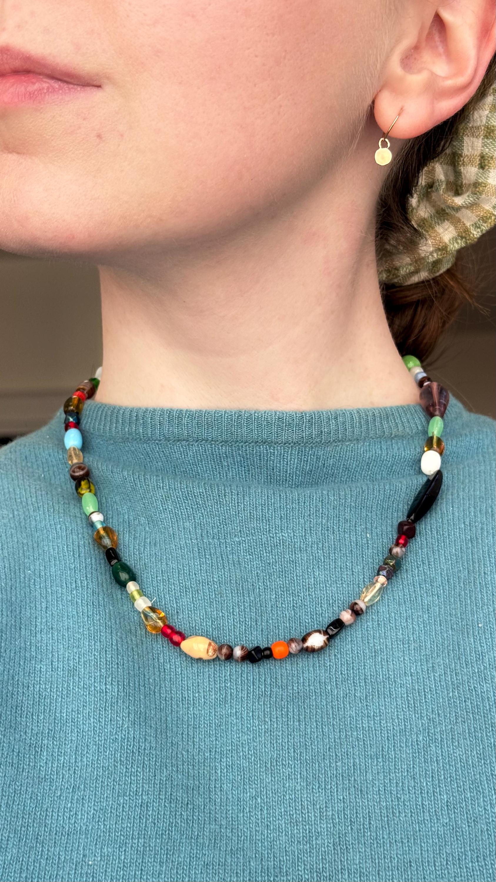 An authentic vintage necklace. a single strand of beautiful Czech glass beads in various colors and shapes.