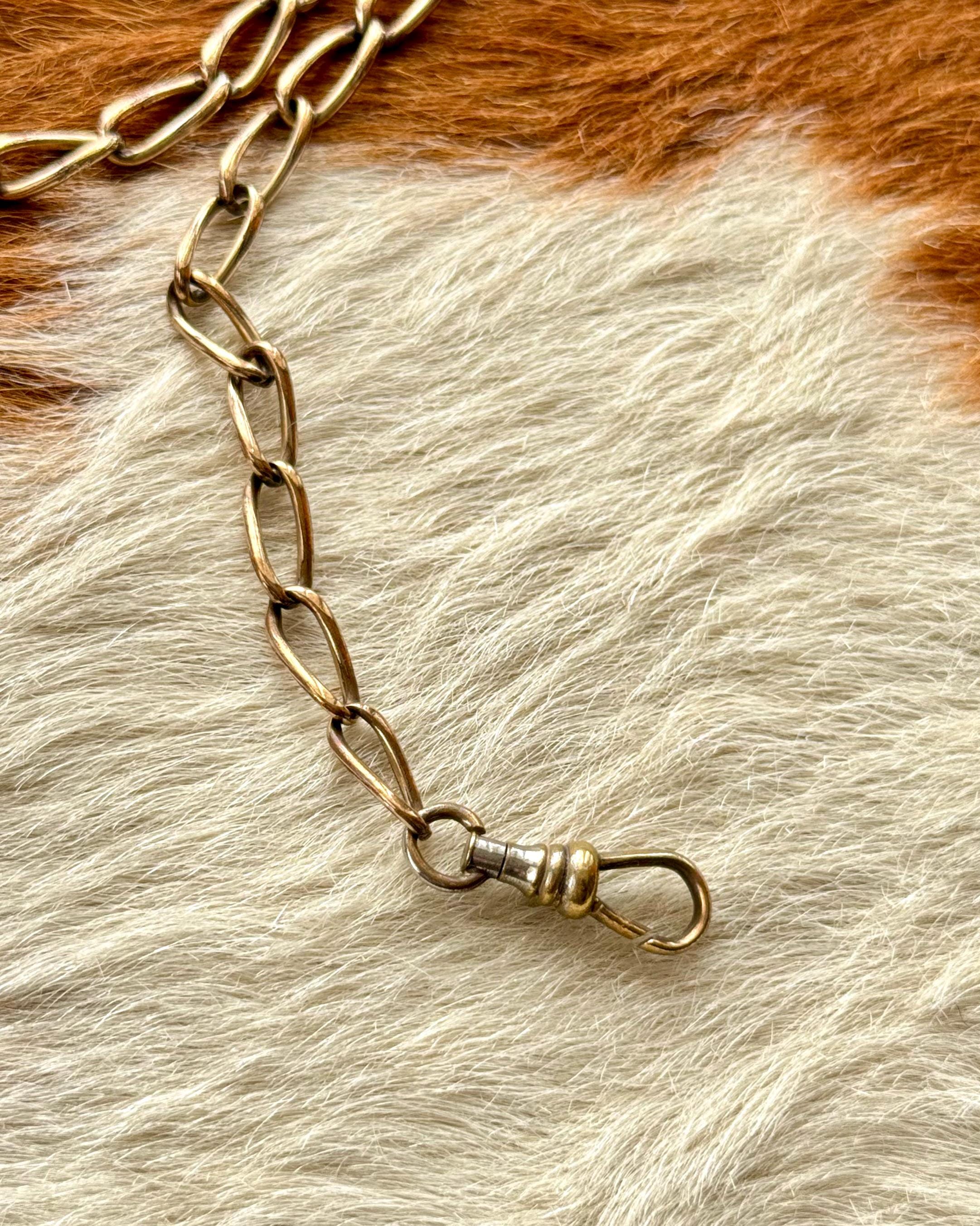 note : the dog clip only is not gold filled but plated brass and has been previously repaired due to a faulty spring clip and may need to be replaced if desired. we have included it for free with the piece as it was found, pricing reflected.