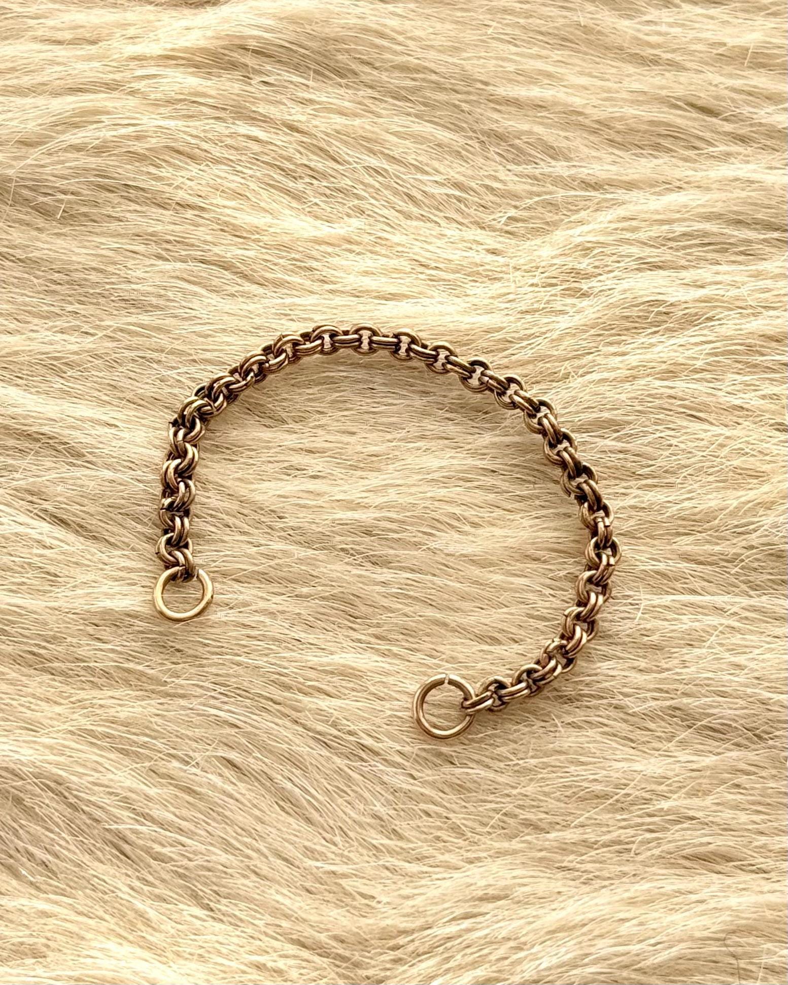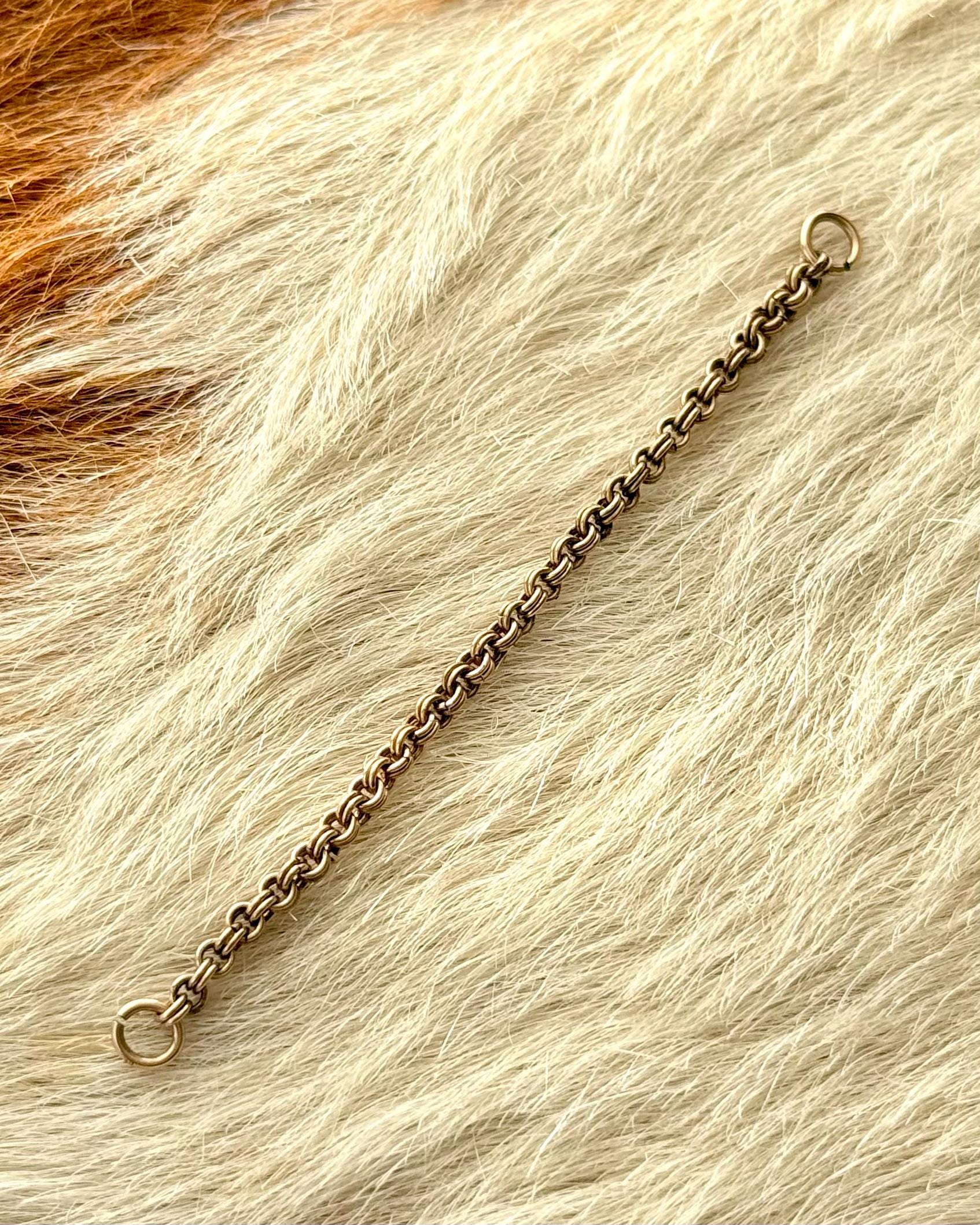 Authentic antique watch chain jewelry extender. this piece has been reclaimed by us at Craft Union from a broken pocket watch chain to function as a chain extender. features a beautiful double rolo link chain with a naturally aged metal finish. includes two seamed jump rings on both ends to assemble jewelry of choice to create your own personalized necklace or other accessory! signed JMF & Co