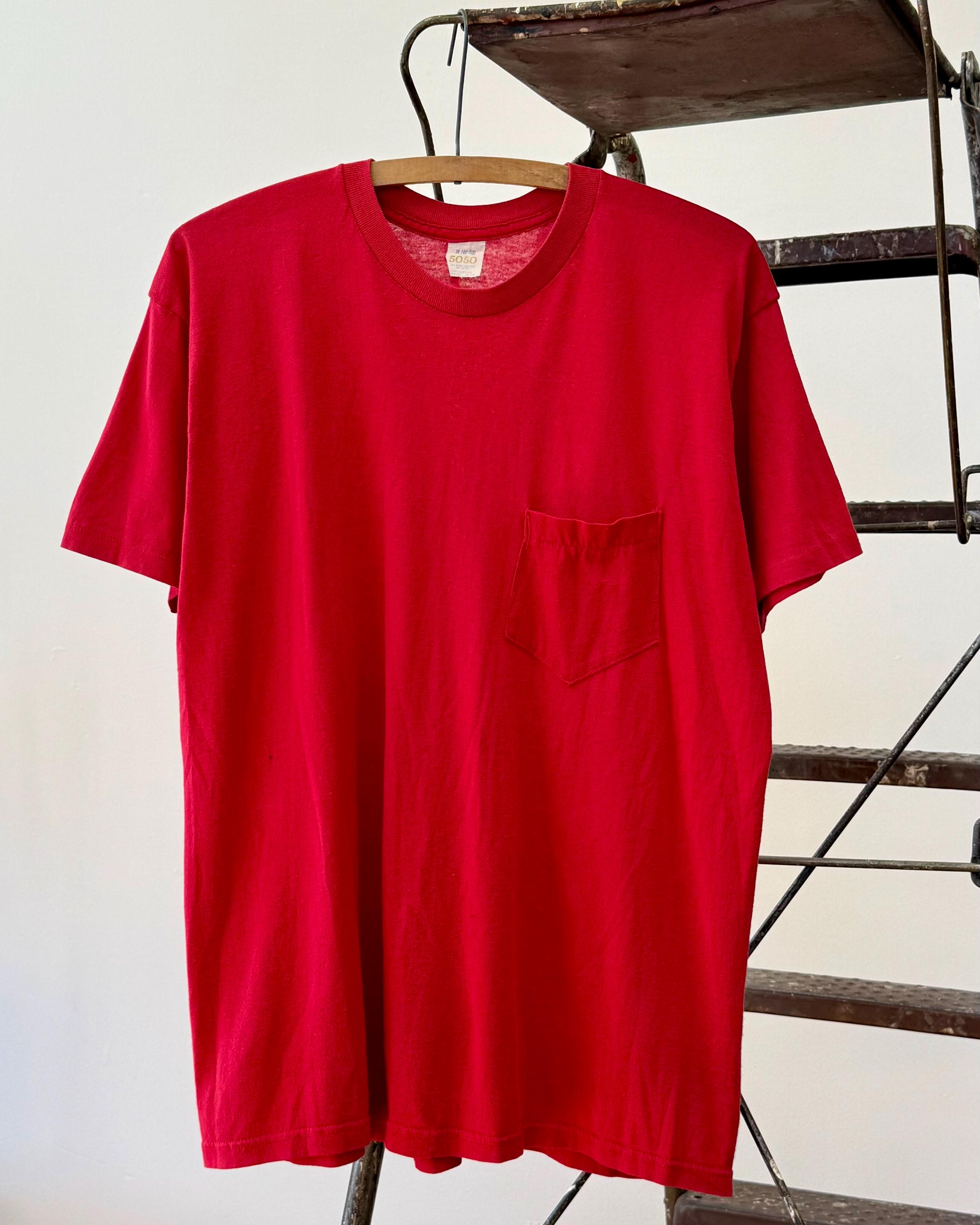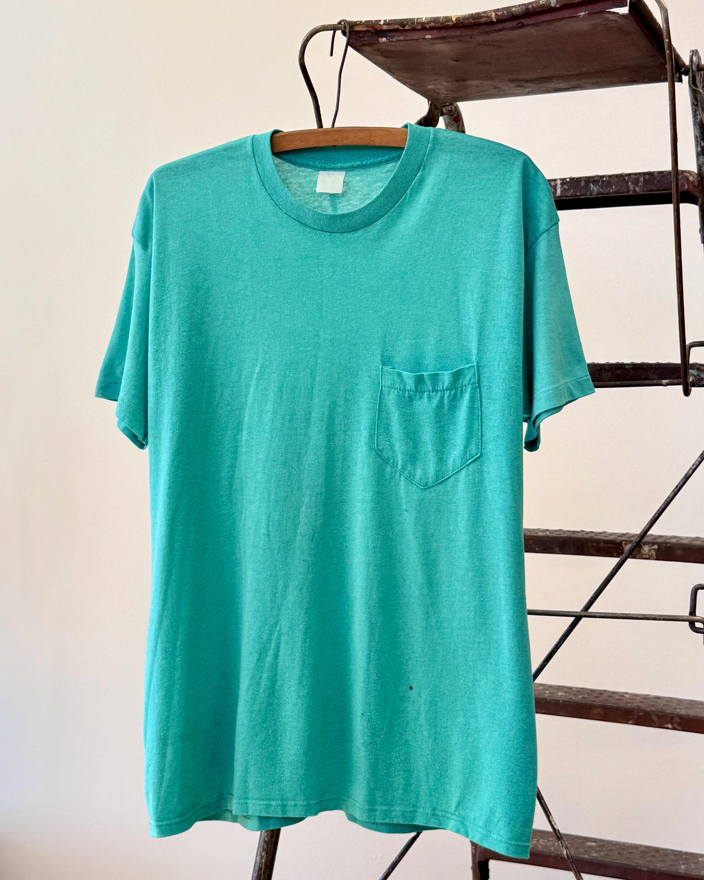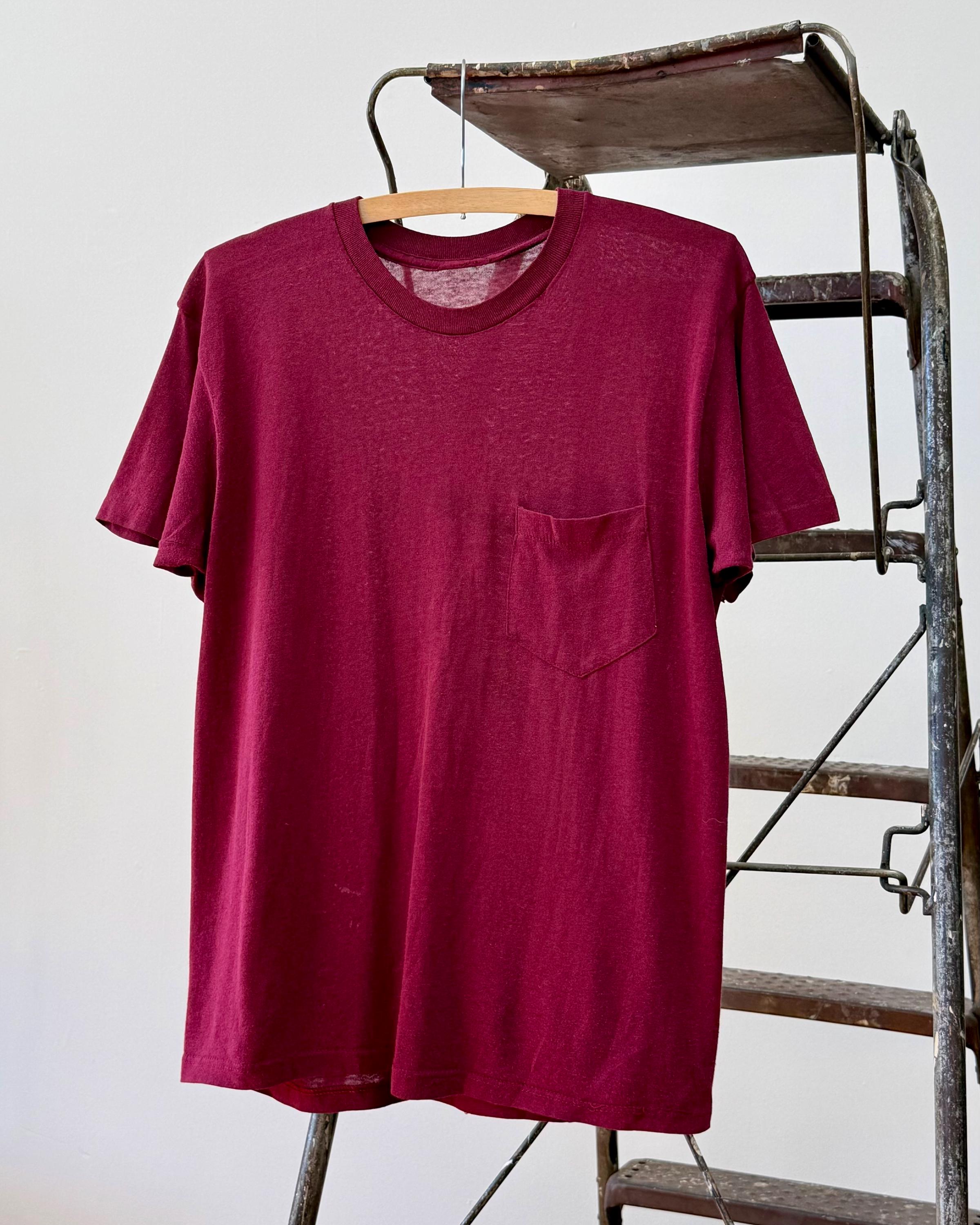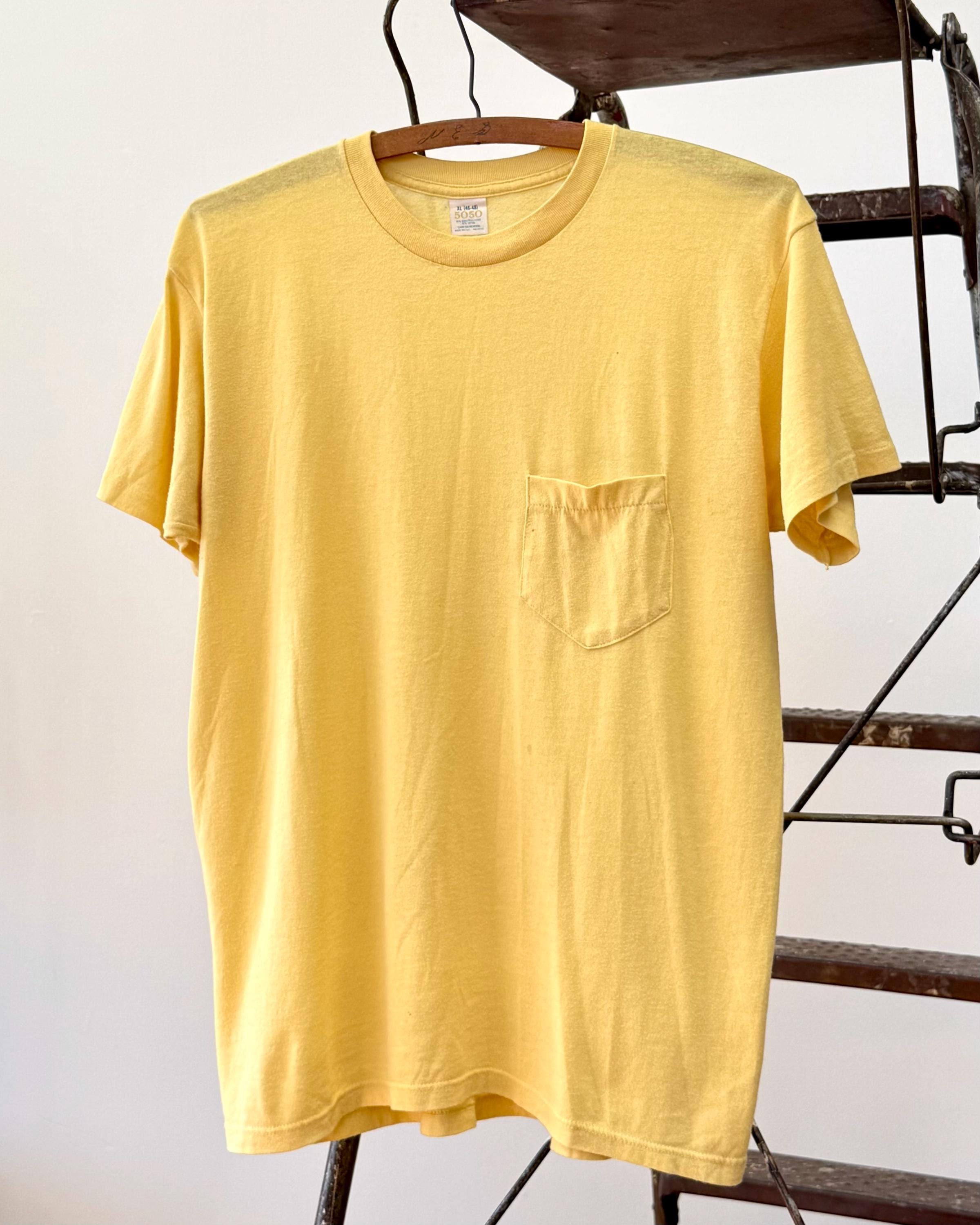 Authentic vintage pocket t shirts. choose from a selection of colors in the same fit and same label. all tees are worn “paper thin” one of a kind with distressed details that vary between tees - such as fading, marks, faint spots, small holes and other patina. made in USA