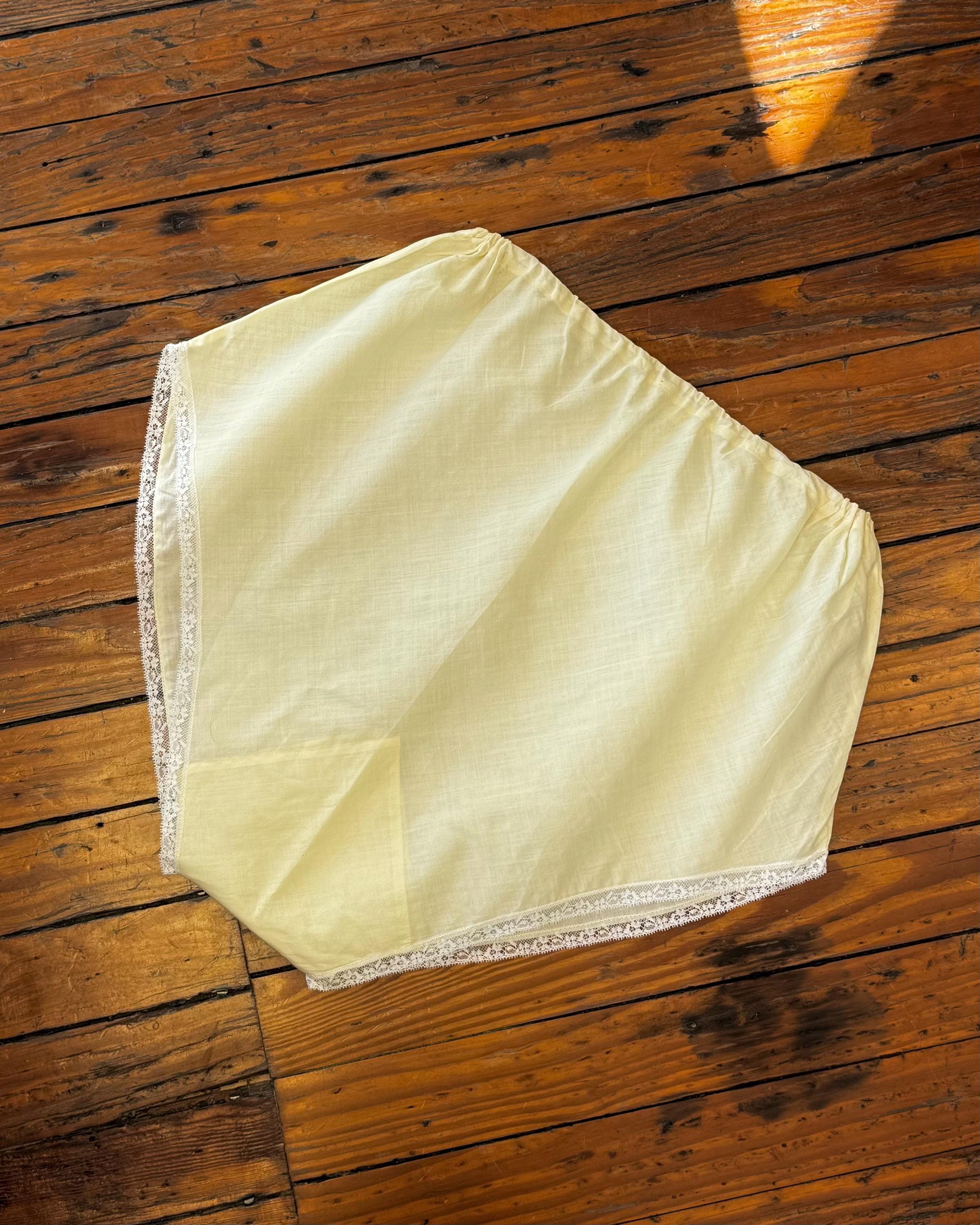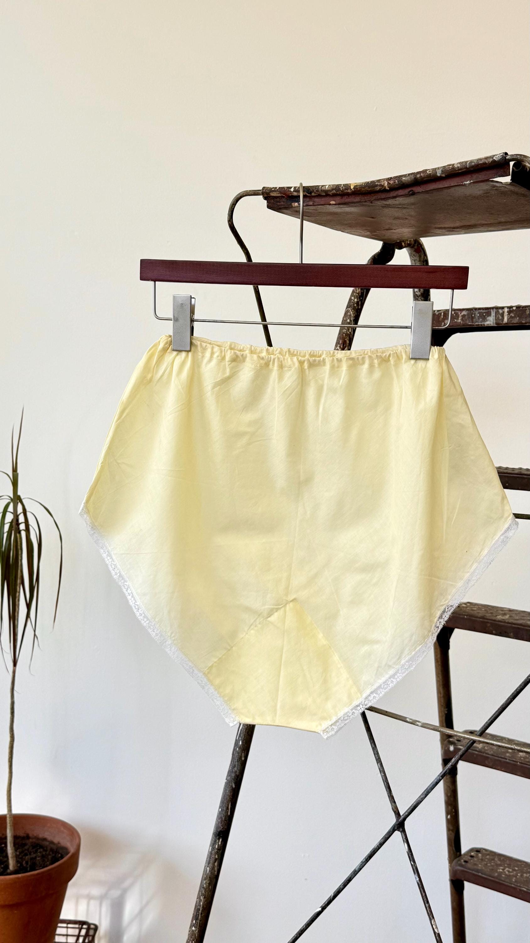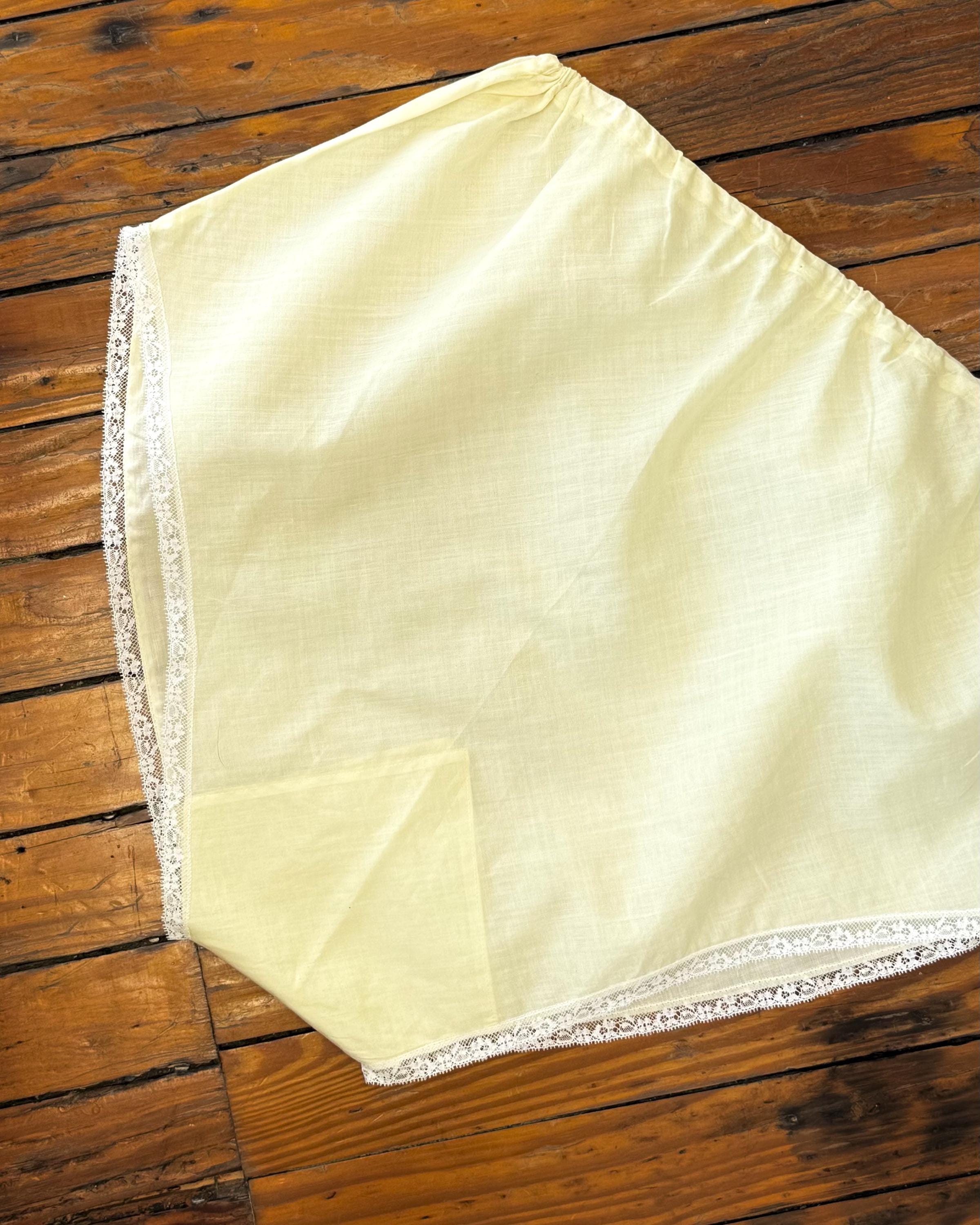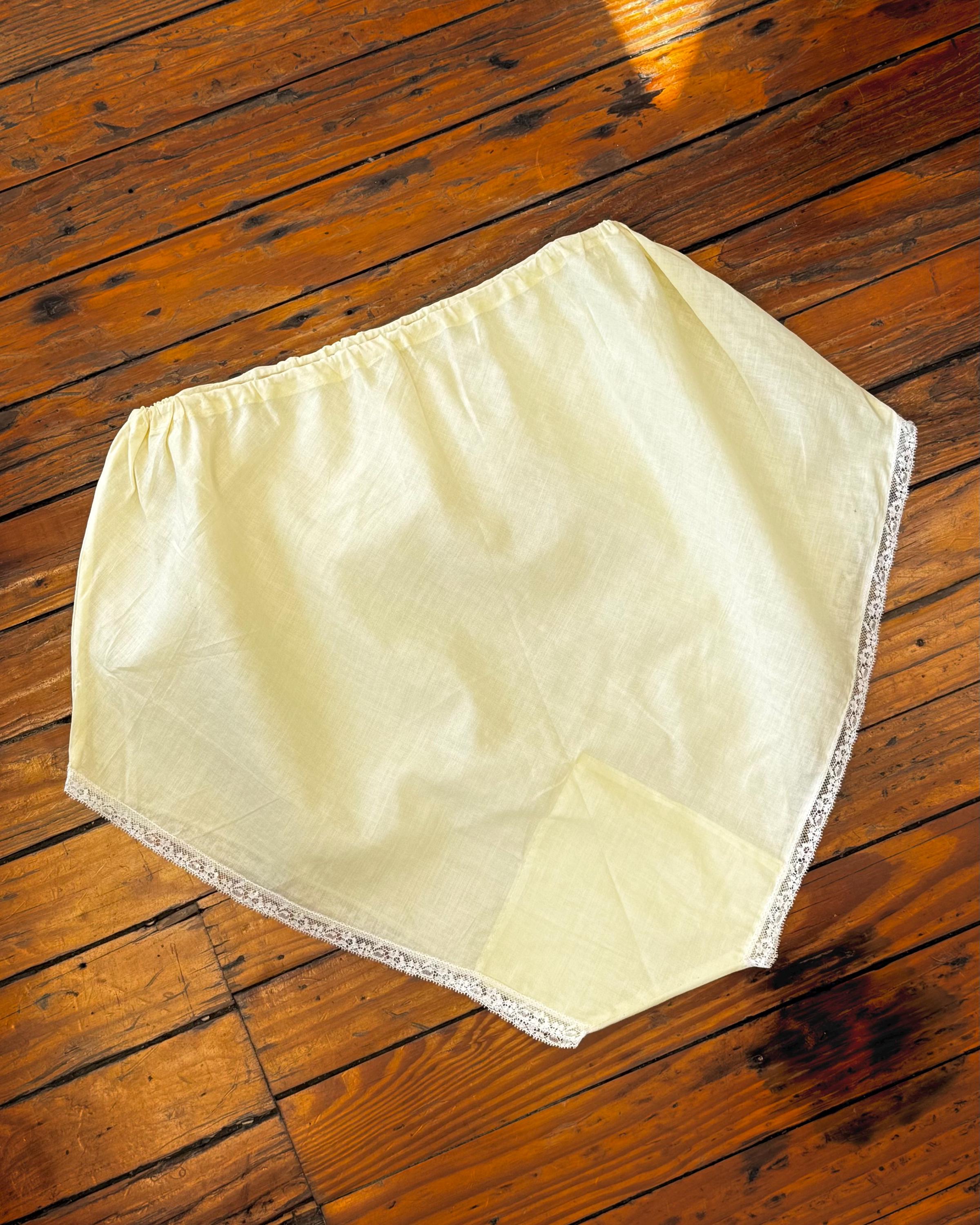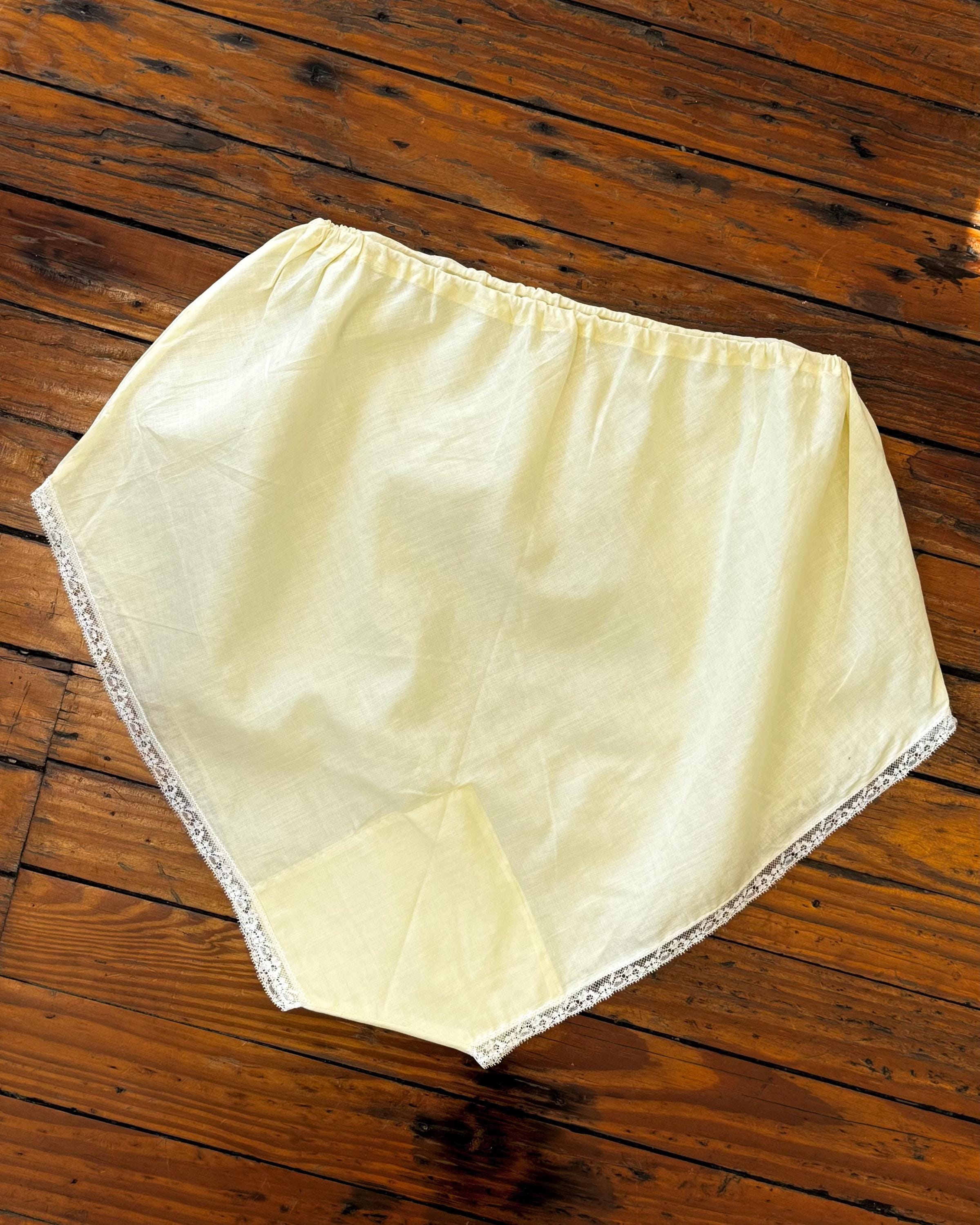 An authentic vintage pair of bloomers. made from a crisp lightweight woven cotton fabric. a bias cut brief with elastic waist and fine lace trim. semi sheer, style for modern day like a pair of shorts over a body suit or wear as sleepwear or to add coverage under a skirt as originally intended.
