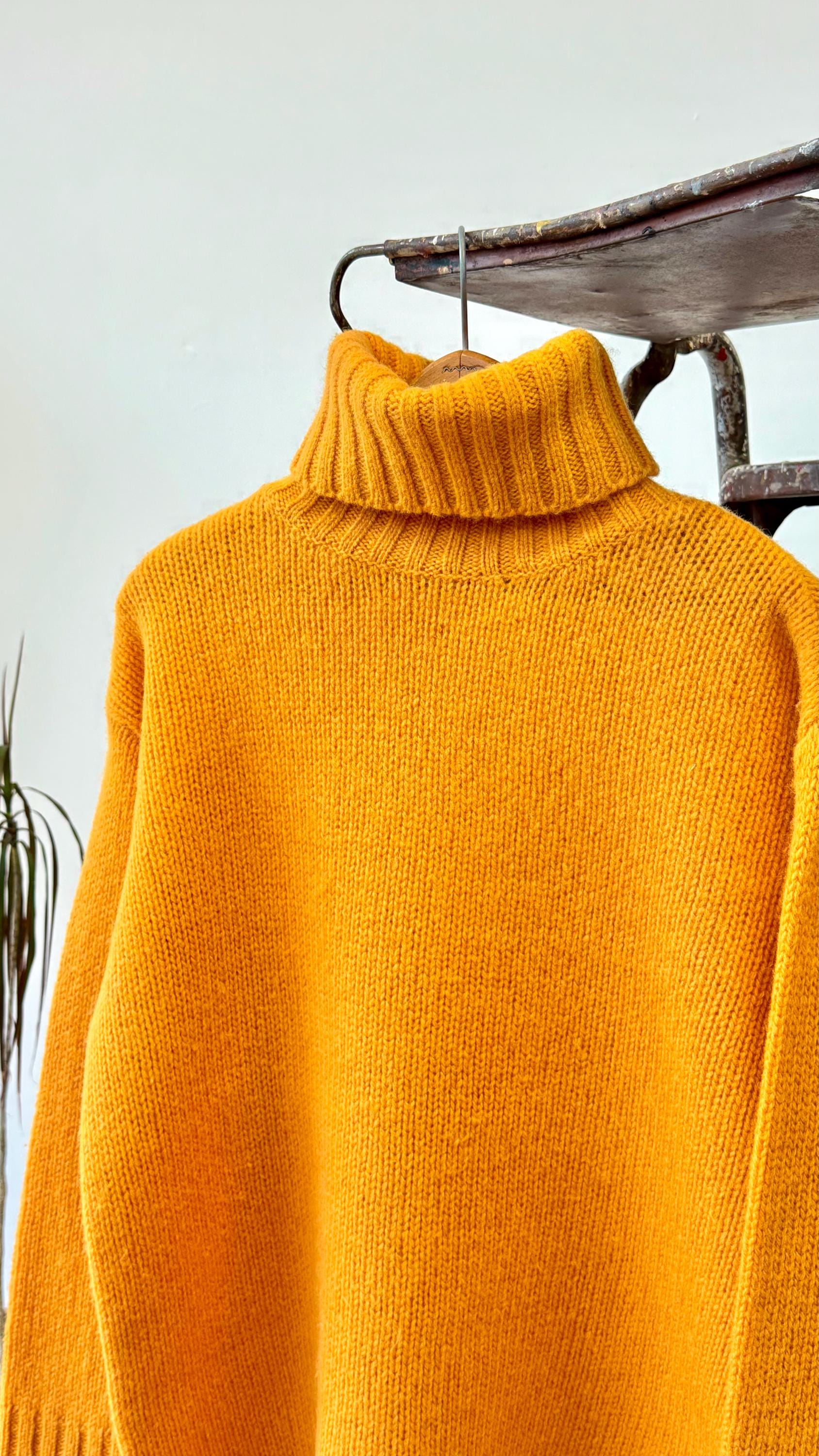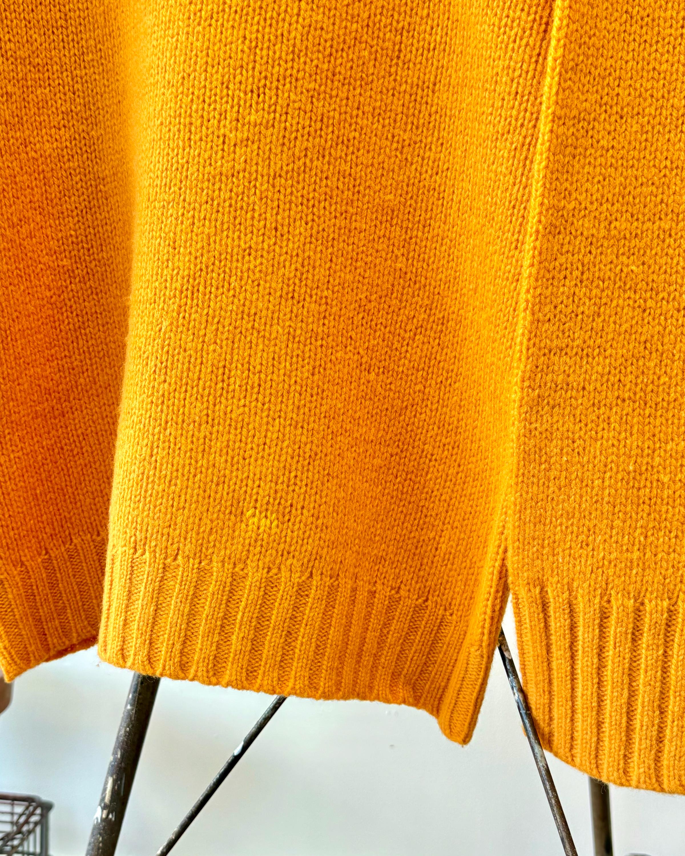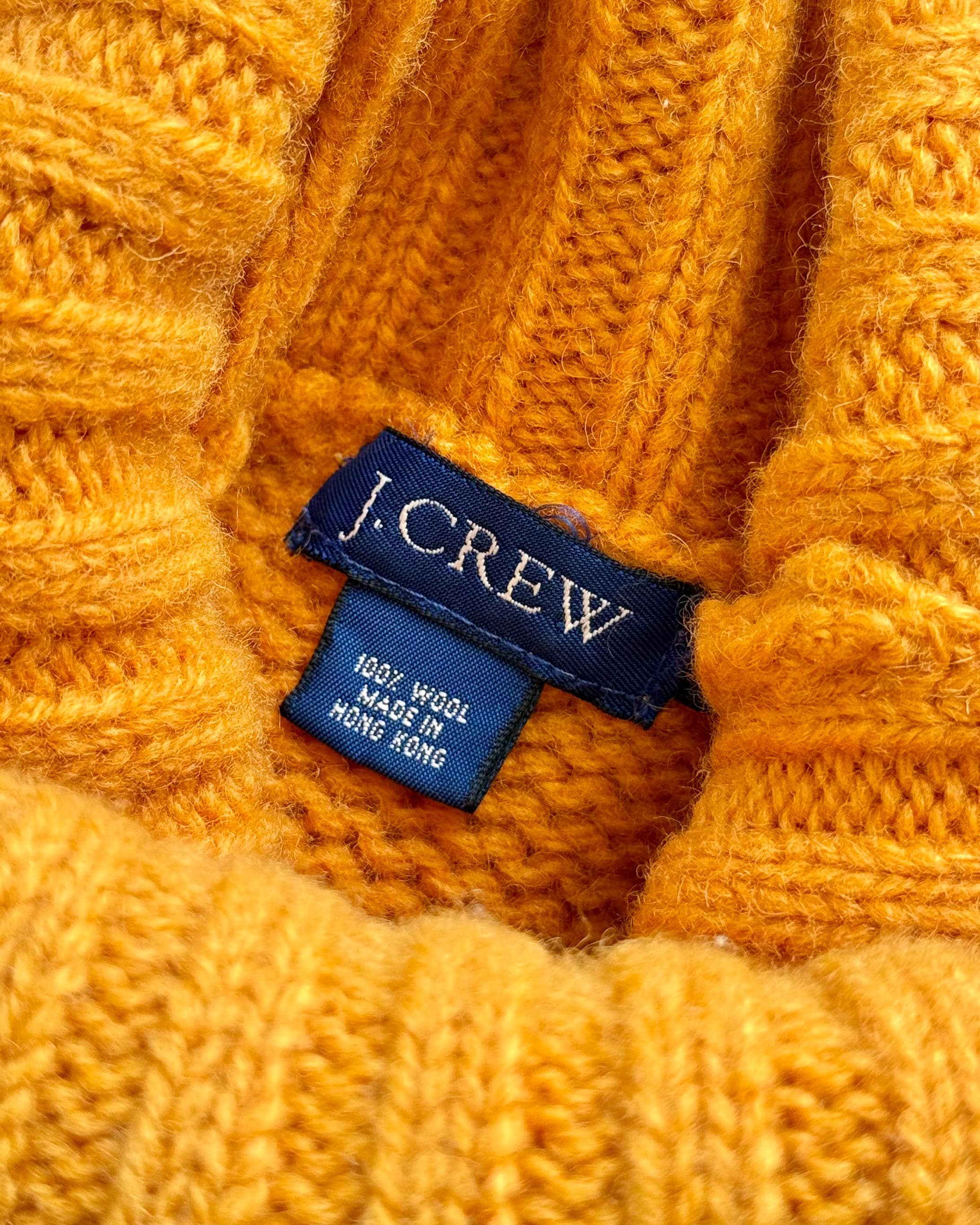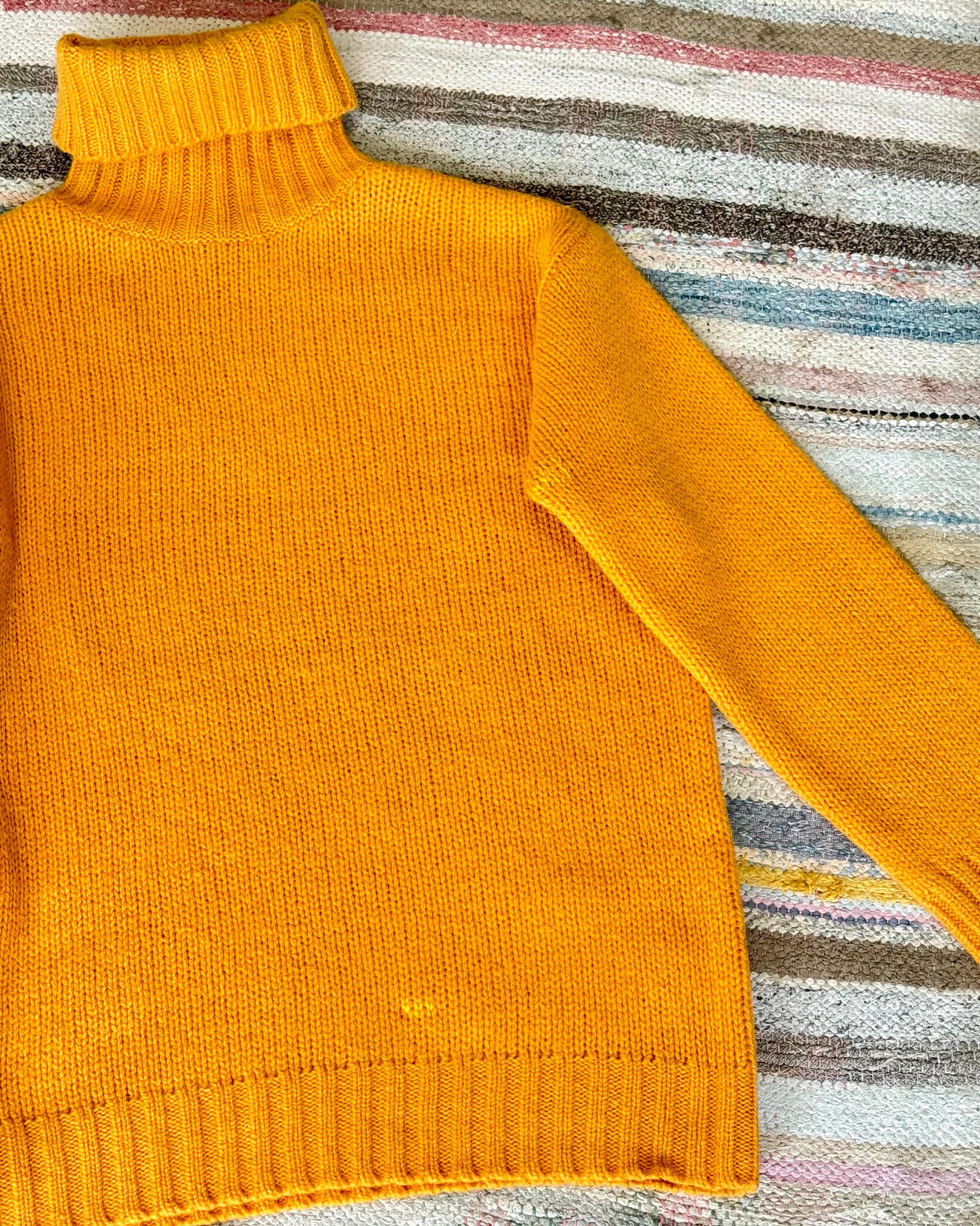 An authentic vintage pullover sweater by J Crew. a dense wool knit in an approachable clementine orange hue. a classic T cut with relaxed fit and fold over turtleneck collar. a great gender neutral style!