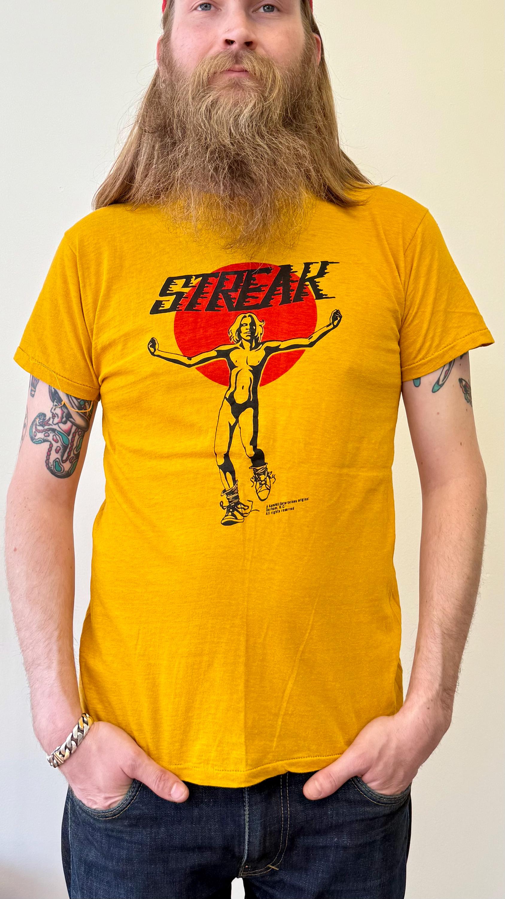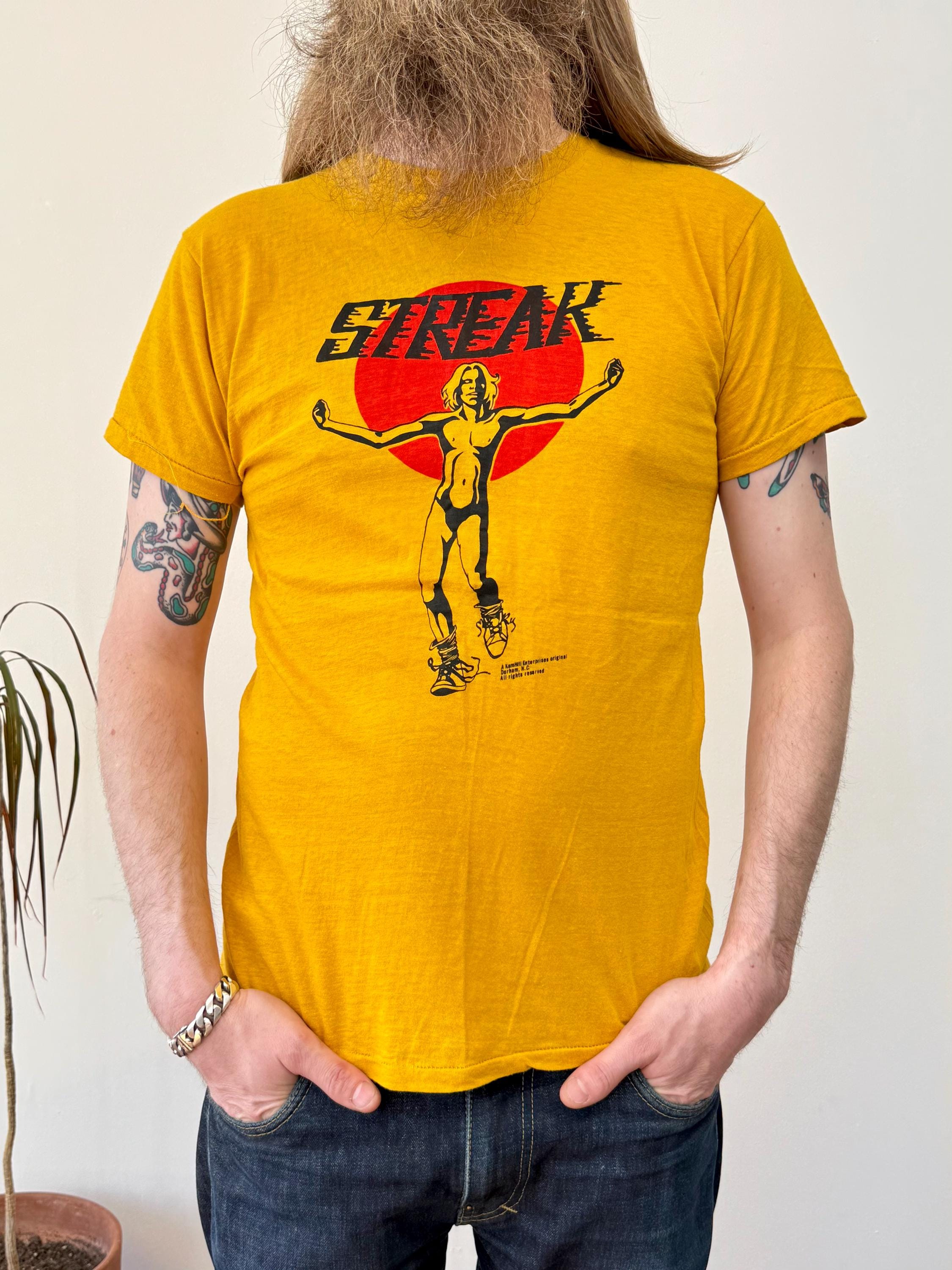 An authentic vintage t shirt featuring a streaker graphic
