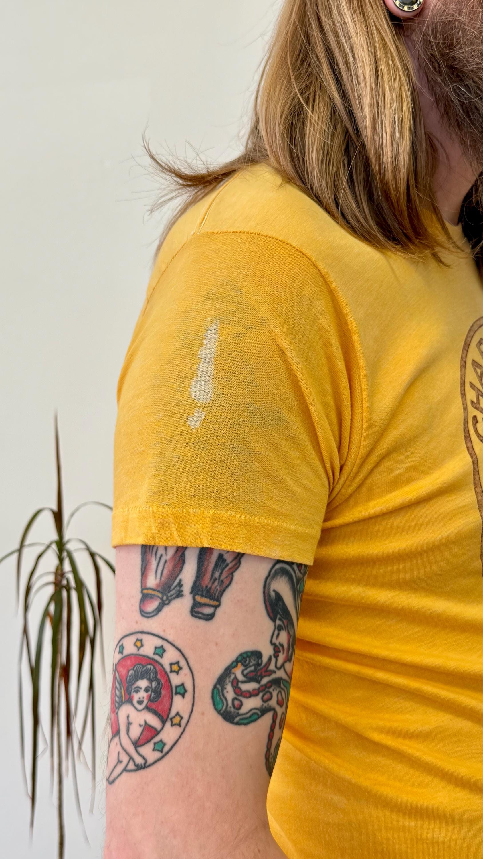 condition : great, appropriate signs of age and wear as seen in photos, a couple paint splatter marks, no other visible damage or large holes - due to age, some subtle imperfections such as faint marks, spots, and pin sized holes are to be expected; garment is clean and ready to wear!